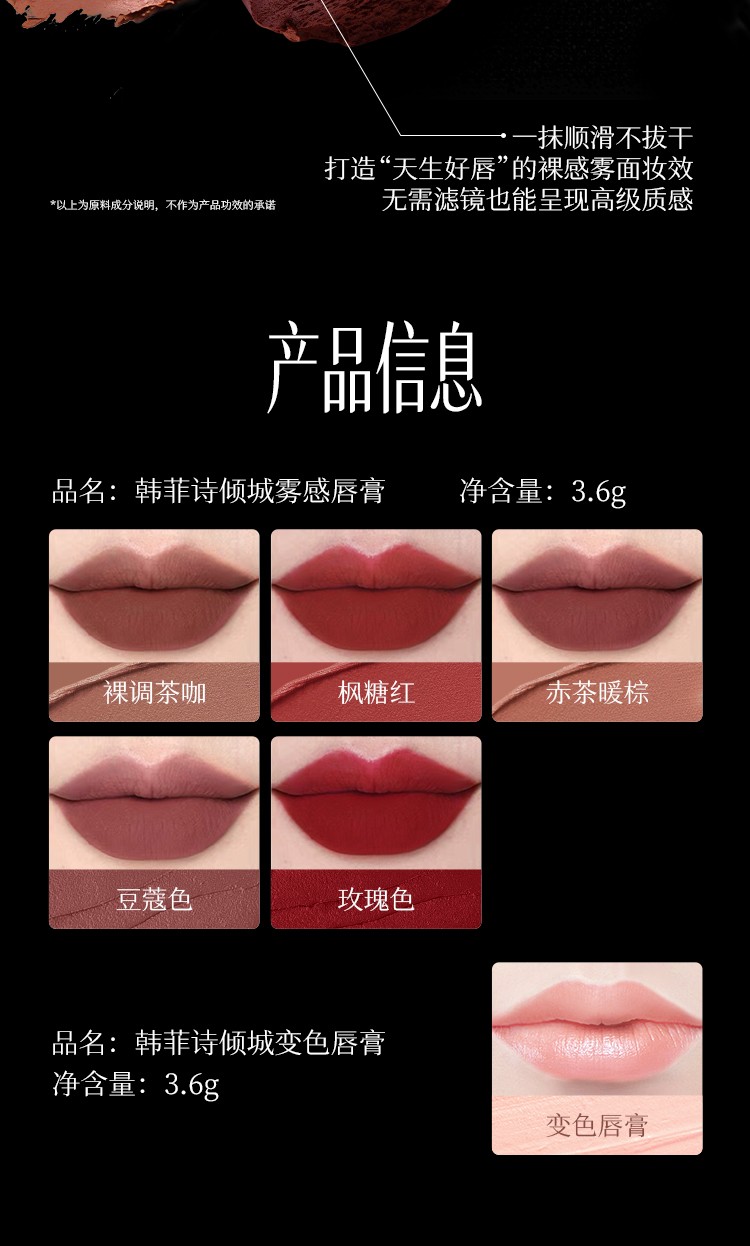 韩菲诗倾城系列唇膏